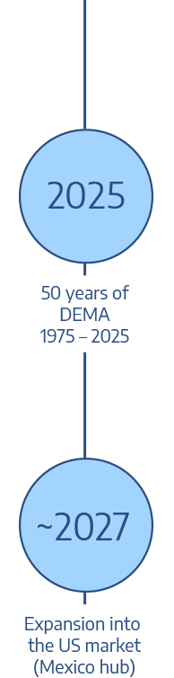 Founded in 1975 in Munich, the DEMA Group today looks back on 50 years of success in the distribution of complex electronic components. From a regional distributor, it has become a global ‘value added optoelectronic and semiconductor supplier’ – valued by internationally operating customers and mid-sized companies. Our milestones show how experience, partnership and innovation have grown into a company active worldwide.
