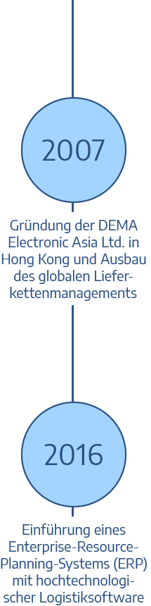 Gegründet 1975 in München, blickt die DEMA Group heute auf 50 Jahre Erfolg im Vertrieb komplexer elektronischer Bauteile zurück. Aus dem regionalen Distributor wurde ein globaler „value added optoelectronic supplier“ – geschätzt von international agierenden Kunden und dem Mittelstand. Unsere Meilensteine zeigen, wie aus Erfahrung, Partnerschaft und Innovation ein weltweit agierendes Unternehmen gewachsen ist.